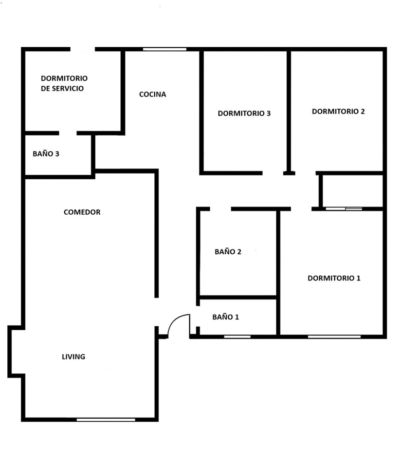 – 3 baños (1 de Servicio)